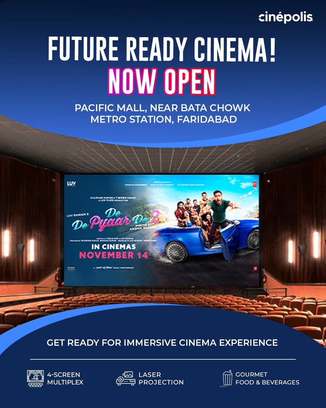 Cinépolis Pacific Mall, Faridabad, is now open to the public.