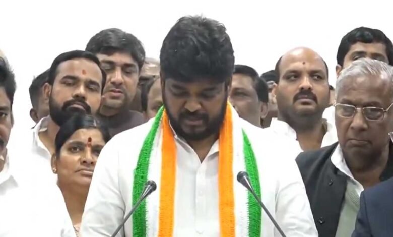 حیدرآباد، 26 نومبر: جوبلی ہِلز کے نومنتخب رکنِ اسمبلی نوین یادَو نے بدھ کے روز حلف لیا۔ تلنگانہ اسمبلی کے اسپیکر گڈم پرساد کمار نے اسپیکر کے دفتر میں منعقدہ سادہ تقریب میں نوین یادَو سے حلف لیا۔ اس موقع پر وزیر سریدھر بابو، اظہر الدین، ایم ایل اے گنیش، کانگریس قائدین اور نوین یادَو کے قریبی رشتہ دار موجود تھے۔