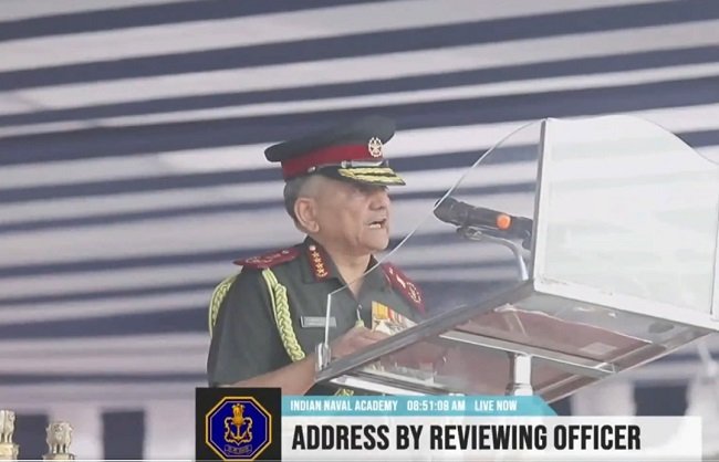 کیرالہ کے ایزیمالا میں پاسنگ آؤٹ پریڈ (پی او پی) کا جائزہ لینے والے افسر جنرل انیل چوہان نے ہفتے کے روز کہا کہ بحریہ ہمارے قومی مفادات کے تحفظ کے لیے مستقبل میں فوجی طاقت کے کسی بھی استعمال میں اہم کردار ادا کرے گی۔ انہوں نے نئے کمیشنڈ افسران سے کہا کہ پیشہ ورانہ مہارت کے لیے ان کی وابستگی غیر متزلزل ہونی چاہیے تاکہ وہ امن کے لیے تیار رہیں اور جنگ میں فتح حاصل کریں۔ اپنا تجربہ بتاتے ہوئے، انہوں نے کہا،جب میں نے سروس میں شمولیت اختیار کی تو فوجی حکمت عملی کا تعین زیادہ تر جغرافیائی لحاظ سے کیا جاتا تھا۔ اس کے برعکس، آج ٹیکنالوجی نے جغرافیہ کو پیچھے چھوڑ دیا ہے، جس سے یہ کم متعلقہ ہے۔