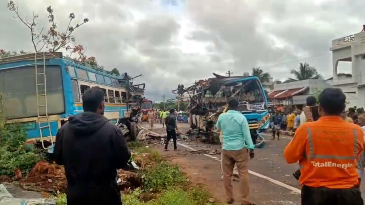 تینکاسی، 24 نومبر(ہ س )۔تمل ناڈو کے تینکاشی ضلع کے کدیانلور کے قریب پیر کی صبح دو نجی بسوں کے درمیان آمنے سامنے تصادم میں چھ افراد ہلاک اور 30 سے زیادہ مسافر شدید زخمی ہو گئے۔ زخمیوں کو علاج کے لیے اسپتال میں داخل کرایا گیا ہے۔