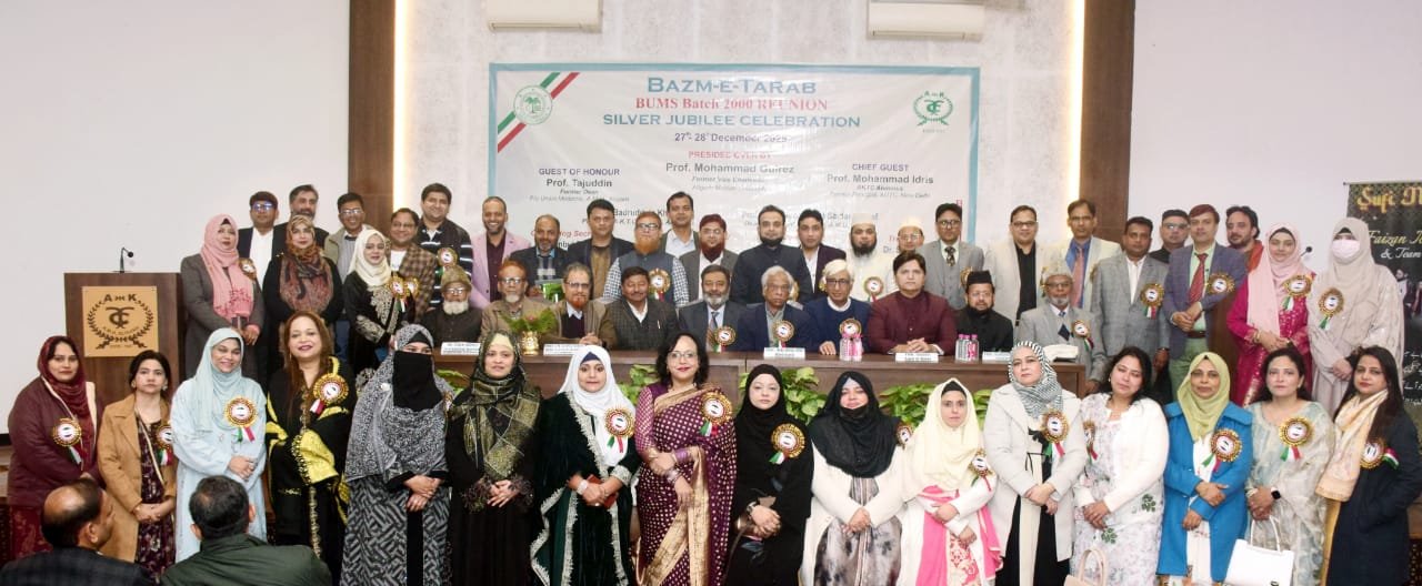 علی گڑھ,31 دسمبر: علی گڑھ مسلم یونیورسٹی کی فیکلٹی آف یونانی میڈیسن کے اجمل خاں طبیہ کالج کے بی یو ایم ایس بیچ 2000 کے سابق طلبہ نے اپنی سلور جوبلی ری یونین تقریب ”بزمِ طرب“ کے عنوان سے منائی، جس میں پچیس برسوں پر محیط مشترکہ تعلیمی زندگی اور پیشہ ورانہ رفاقت کا جشن منایا گیا۔ دو روزہ پروگرام 27 اور 28 دسمبر کو اجمل خاں طبیہ کالج میں منعقد ہوا، جو نہ صرف سابق طلبہ کی باہمی رفاقت کا مظہر تھا بلکہ اس ادارے کو خراجِ تحسین بھی تھا جس نے ان کے کریئر کی تشکیل میں اہم کردار ادا کیا۔