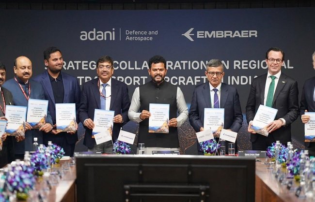 نئی دہلی، 27 جنوری : اڈانی گروپ اور برازیل کی ایوی ایشن کمپنی ایمبریئر ہندوستان میں ایک علاقائی طیارہ سازی کی سہولت قائم کریں گے۔ اس شراکت داری کا اعلان منگل کو نئی دہلی میں اسٹریٹیجک تعاون کے لیے مفاہمت نامے (ایم او یو) پر دستخط کے بعد کیا گیا۔اڈانی ڈیفنس اینڈ ایرو اسپیس اور ایمبریئر کے عہدیداروں نے منگل کو شہری ہوا بازی کی وزارت میں مرکزی وزیر کے رام موہن نائیڈو کی موجودگی میں ایم او یو پر دستخط کیے۔ معاہدے کے تحت دونوں کمپنیاں ملک میں علاقائی ٹرانسپورٹ طیاروں کے لیے فائنل اسمبلی لائن (ایف اے ایل) بھی قائم کریں گی۔ تاہم، مجوزہ سہولت کی سرمایہ کاری اور مقام کے بارے میں تفصیلات کا اشتراک نہیں کیا گیا ہے۔شہری ہوابازی کے وزیر کے رام موہن نائیڈو نے اس موقع پر کہا کہ ایمبریئر اور اڈانی آن لائن کے درمیان تاریخی مفاہمت کی یادداشت (ایم او یو) ہندوستان کے علاقائی نقل و حمل کے ماحولیاتی نظام کو ترقی دینے کے لیے ایک اسٹریٹجک تعاون کا آغاز ہے۔ نائیڈو نے مزید کہا کہ اڑان کے وزیر اعظم کے وژن سے متاثر یہ شراکت داری علاقائی ہوائی رابطہ کے لیے آخر سے آخر تک مقامی حل پیدا کرنے میں کلیدی کردار ادا کرے گی۔ گھریلو اجزاء کی تیاری اور ایم آر او خدمات کے لیے شراکت داری ‘میک ان انڈیا’ کے لیے ہماری وابستگی کو تقویت دے گی اور عالمی ایوی ایشن سپلائی چین میں ہندوستان کے انضمام کو مضبوط کرے گی۔