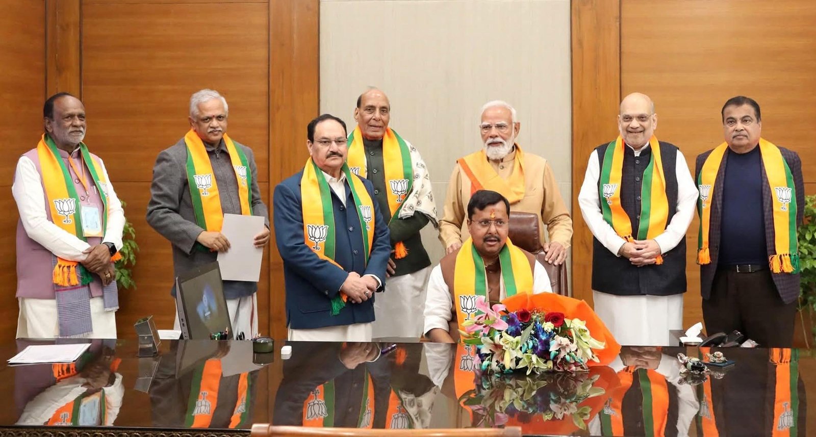 وزیر اعظم مودی نے نتن نبین کو ہار پہنایا اور انہیں بی جے پی کا صدر بننے پر مبارکباد دی اور کامیاب قیادت کی خواہش کی۔ سبکدوش ہونے والے صدر جگت پرکاش نڈا نے بھی مسٹر نبین کو مبارکباد دی اور نیک خواہشات کا اظہار کیا۔ بی جے پی کے سابق صدر اور مرکزی وزیر جے پی نڈا، مرکزی وزیر داخلہ امیت شاہ، مرکزی وزیر نتن گڈکری، اور وزیر دفاع راج ناتھ سنگھ اس موقع پر بی جے پی ہیڈکوارٹر کے اسٹیج پر موجود تھے۔ انہوں نے نتن نبین کو بھی مبارکباد دی۔
