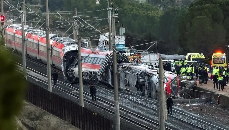 میڈرڈ،19جنوری:جنوبی سپین میں ایک تیز رفتار ٹرین پٹری سے اترنے کے بعد مخالف سمت سے آنے والی تیز رفتار ٹرین سے ٹکرا گئی، حادثے میں 39 افراد ہلاک اور 100 سے زائد زخمی ہو گئے۔رائٹرز کے مطابق یہ حادثہ صوبہ قرطبہ کے علاقے آداموز کے قریب پیش آیا، جو دارالحکومت میڈرڈ سے تقریباً 360 کلومیٹر جنوب میں واقع ہے۔اندلس کی علاقائی حکومت کے سربراہ خوانما مورینو نے پیر کی صبح صحافیوں سے گفتگو میں بتایا کہ 75 افراد کو اسپتال منتقل کیا گیا ہے، جن میں سے 15 کی حالت تشویشناک ہے۔ انہوں نے بتایا کہ ہلاکتوں کی تعداد بڑھے کا امکان ہے
