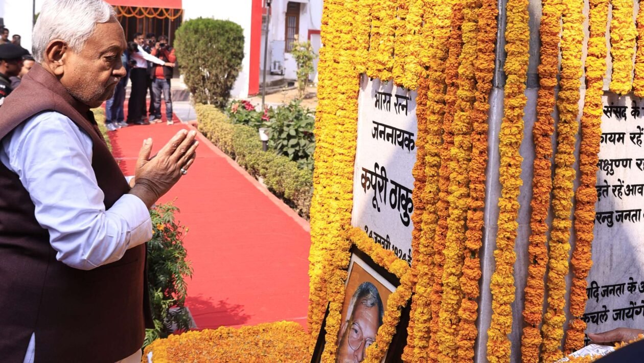 پٹنہ، 17 فروری (ہ س)۔ بھارت رتن کرپوری ٹھاکر کی برسی کے موقع پر منگل کےروز دیش رتن مارگ واقع جن نائک کرپوری ٹھاکر میموریل میوزیم میں خراج عقیدت تقریب کا انعقاد کیا گیا۔ اس موقع پر بہار کے وزیر اعلیٰ نتیش کمار نے کرپوری ٹھاکرکے مجسمہ پرگلپوشی اور انہیں دلی خراج عقیدت پیش کیا۔