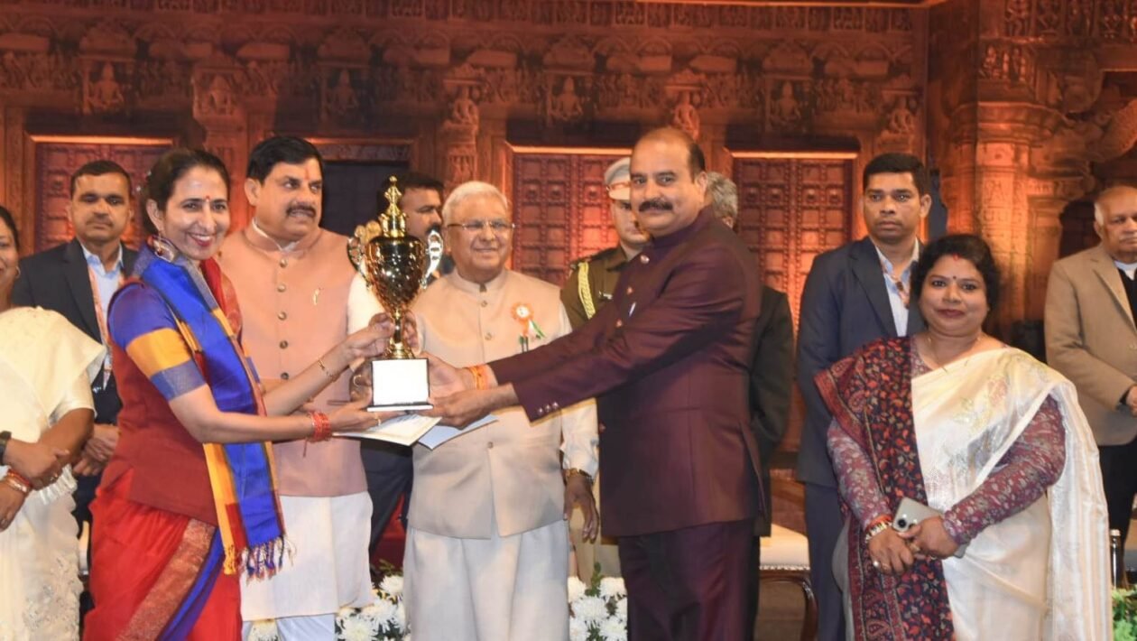 राज्यपाल श्री मंगुभाई पटेल एवं मुख्यमंत्री डॉ. मोहन यादव द्वारा रविंद्र भवन में आयोजित लोकरंग कार्यक्रम के दौरान, गणतंत्र दिवस के अवसर पर भोपाल के लाल परेड मैदान में आयोजित राज्य स्तरीय समारोह में उच्च शिक्षा विभाग द्वारा प्रस्तुत “शोध एवं अनुसंधान, समृद्ध मध्यप्रदेश की पहचान” थीम पर आकर्षक झांकी को द्वितीय स्थान मिलने पर सम्मानित किया गया।