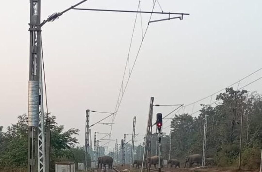 रेल लाइन पर हाथियों का झुंड पहुंचा, ट्रैक मेंटेनरों में मचा हड़कंप