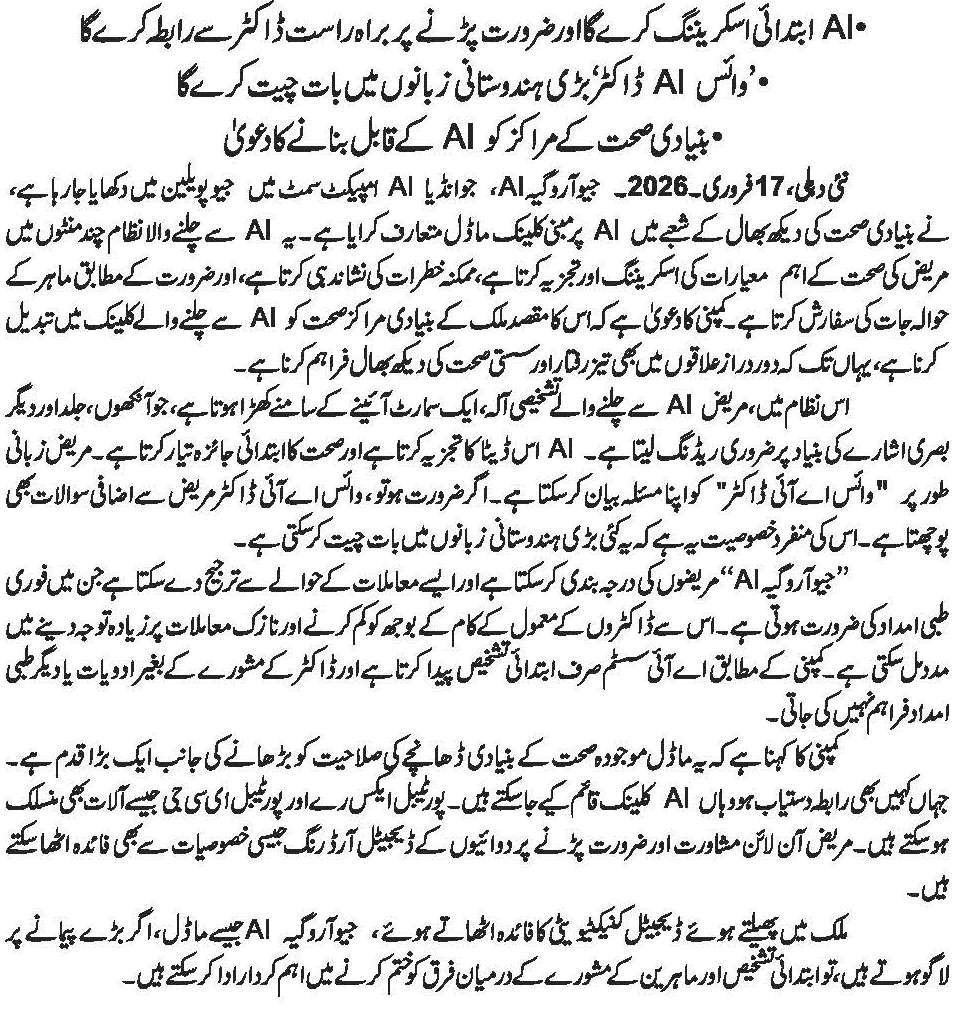 جیو آروگیہ اے آئی نے مصنوعی ذہانت پر مبنی کلینک ماڈل پیش کیا