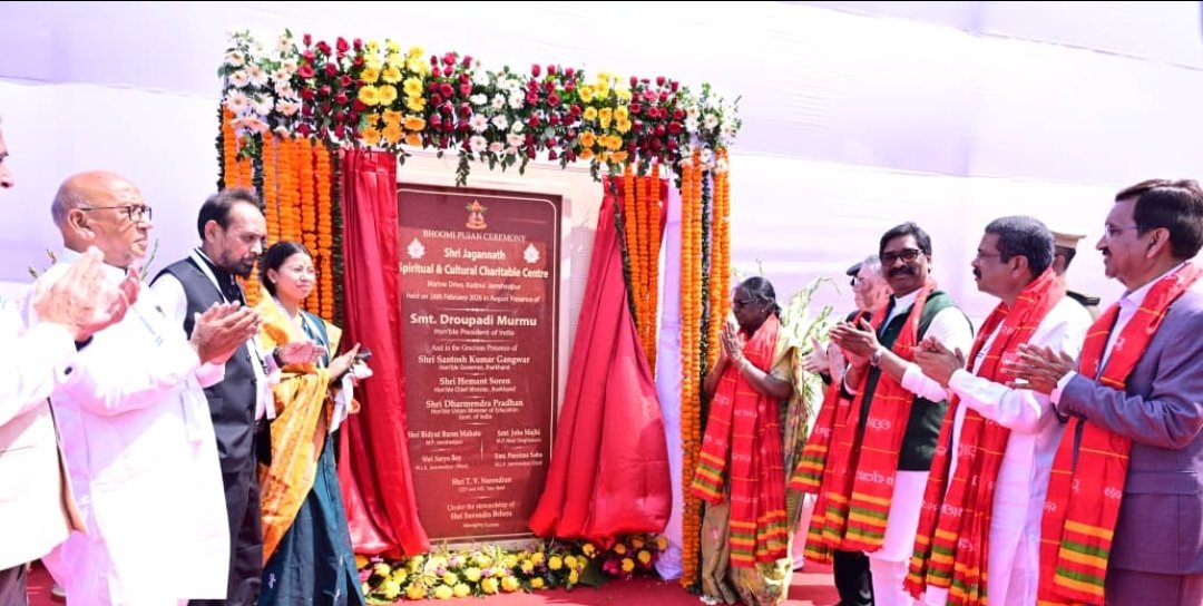 جمشید پور کے اپنے دورے کے دوران، صدر جہوریہ کی پہلی تقریب کدما میں انیل سور پتھ پر مجوزہ بھگوان جگن ناتھ مندر اور روحانی مرکز کی تعمیراتی جگہ پر منعقد ہوئی۔ یہاں، انہوں نے مندر کی تعمیر کا افتتاح کرتے ہوئے سنگ بنیاد کی تقریب انجام دی۔