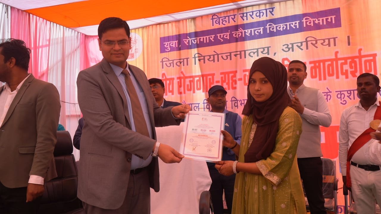 ارریہ: (مشتاق احمد صدیقی) ڈسٹرکٹ ایمپلائمنٹ آفس ارریہ کے زیراہتمام یوتھ، ایمپلائمنٹ اینڈ اسکل ڈیولپمنٹ ڈپارٹمنٹ کے تحت گزشتہ کل جوائنٹ لیبر بلڈنگ ارریہ میں ایک روزہ ضلع سطح پر روزگار اور پیشہ ورانہ رہنمائی میلے کا کامیاب انعقاد کیا گیا۔ اس میلے کا بنیادی مقصد پرائیویٹ سیکٹر میں امیدواروں کو روزگار کے مواقع فراہم کرنا تھا۔ روزگار میلے کا افتتاح مہمان خصوصی، ضلع مجسٹریٹ، ارریہ، شری ونود دوہان نے چراغ جلا کر کیا۔ اس موقع پر ضلع مجسٹریٹ نے کہا کہ روزگار میلہ نوجوانوں کے لیے روزگار کے حصول کے لیے ایک طاقتور پلیٹ فارم کے طور پر ابھر رہا ہے۔ اس کے ذریعے ضلع کے ساتھ ساتھ پورے بہار میں روزگار کے سینکڑوں مواقع پیدا ہو رہے ہیں۔ انہوں نے نوجوانوں پر زور دیا کہ وہ اس موقع سے بھرپور فائدہ اٹھائیں، اپنی قابلیت کے مطابق روزگار حاصل کریں اور خود انحصاری کی طرف بڑھیں۔ ضلع مجسٹریٹ نے روزگار میلے میں اسکلڈ یوتھ پروگرام سے متعلق اسٹڈی کٹس اور سرٹیفکیٹ بھی تقسیم کئے۔ اس موقع پر مسٹر امیت کمار، اسسٹنٹ ڈائرکٹر (پلاننگ)، لوئر ریجنل پلاننگ آفس، سہرسہ، لیبر سپرنٹنڈنٹ، ارریہ، پرنسپل، ویمنس آئی ٹی آئی، فوربس گنج، ضلع اقلیتی بہبود آفیسر، ارریہ، اسسٹنٹ ڈائرکٹر، ڈسٹرکٹ چائلڈ پروٹیکشن یونٹ، ارریہ، جنرل منیجر، ضلعی صنعتی اور صنعتی مرکز، ارریہ، جنرل منیجر، ضلعی صنعت و تجارت کے افسران موجود تھے۔ سنٹر، ارریہ، دیگر متعلقہ حکام کے ساتھ۔ کل 18 نجی شعبے کے آجروں نے روزگار میلے میں حصہ لیا، جس میں تقریباً 800 آسامیاں تھیں۔ آجروں کو کل 1,147 ریزیومے موصول ہوئے، جن میں سے 326 امیدواروں کو عارضی طور پر منتخب کیا گیا۔ کل 371 امیدواروں کو چار سٹالز کے ذریعے رہنمائی دی گئی۔ روزگار میلے کا انعقاد مسٹر آدتیہ پرکاش، ڈسٹرکٹ پلاننگ آفیسر، ارریہ نے کیا۔ مسٹر روی کمار، ڈسٹرکٹ سکلز مینیجر، ارریہ؛ اور مسٹر مکیش کمار رنجن، لوئر ڈویژن کلرک، ڈسٹرکٹ پلاننگ آفس، ارریہ کے تمام ملازمین۔