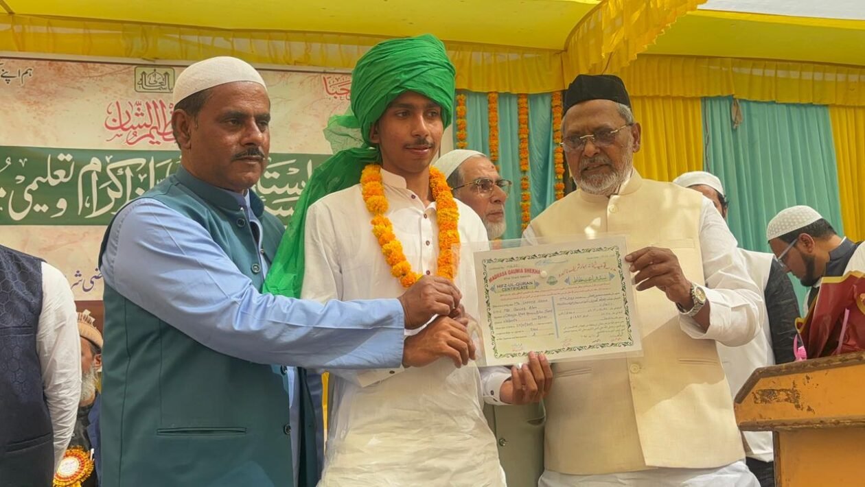 بہار شریف 19 فروری(محمد دانش)بہار شریف شہر کی معروف دینی درسگاہ مدرسہ قومیہ شیخانہ میں جلسۂ دستار بندی و تعلیمی مظاہرہ نہایت شان و شوکت اور تزک و احتشام کے ساتھ منعقد ہوا، جس میں علمی، روحانی اور دینی فضا قابلِ دید رہی۔ اس باوقار اور روح پرور تقریب میں بڑی تعداد میں علماء کرام، معززینِ شہر، طلبہ اور عوام الناس نے شرکت کی۔تقریب کے دوران چھجو محلہ کھاری کنواں کے باشندہ حافظ محمد شمس ھدیٰ عرف جنگ بدری ابن محمد پرویز عالم عرف جنگ بدری کی دستار بندی عمل میں آئی۔ اس موقع پر انہیں سند سے نوازا گیا اور معزز علماء و ذمہ داران کی جانب سے خصوصی دعاؤں سے بھی سرفراز کیا گیا۔ حاضرینِ مجلس نے اس کامیابی کو ان کی محنت، لگن اور دینی شوق کا ثمر قرار دیتے ہوئے دل کی گہرائیوں سے مبارکباد پیش کی۔اس پروقار تقریب میں بہار اسٹیٹ سنی وقف بورڈ کے چیئرمین الحاج محمد ارشاد اللہ صاحب نے بطورِ خاص شرکت کی۔ انہوں نے حافظ محمد شمس ھدیٰ عرف جنگ بدری کو اس عظیم کامیابی پر مبارکباد دیتے ہوئے ان کے روشن مستقبل، مزید علمی ترقی اور دینی خدمات کے لیے نیک خواہشات کا اظہار کیا۔