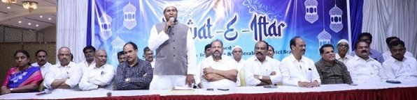 حیدرآباد،13 مارچ:اساتذہ یونین تلنگانہ اسٹیٹ (ایس ٹی یوٹی ایس) کے زیر اہتمام شاہ فنکشن ہال، لکڑی کا پل، حیدرآباد میں دعوت افطار کی ایک باوقاراور روح پرور تقریب کا انعقاد عمل میں آیا۔ اس تقریب میں مختلف یونینوں کے قائدین کے علاوہ ریاستی، ضلعی اور منڈل سطح کے عہدیداران، ہیڈ ماسٹرس، اساتذہ کرام اور میڈیا سے وابستہ معزز شخصیات کی بڑی تعداد نے شرکت کی۔ تقریب کا آغاز محمد نظیرالدین کی تلاوتِ کلامِ پاک سے ہوا جس سے محفل روحانیت سے معطر ہوگئی۔