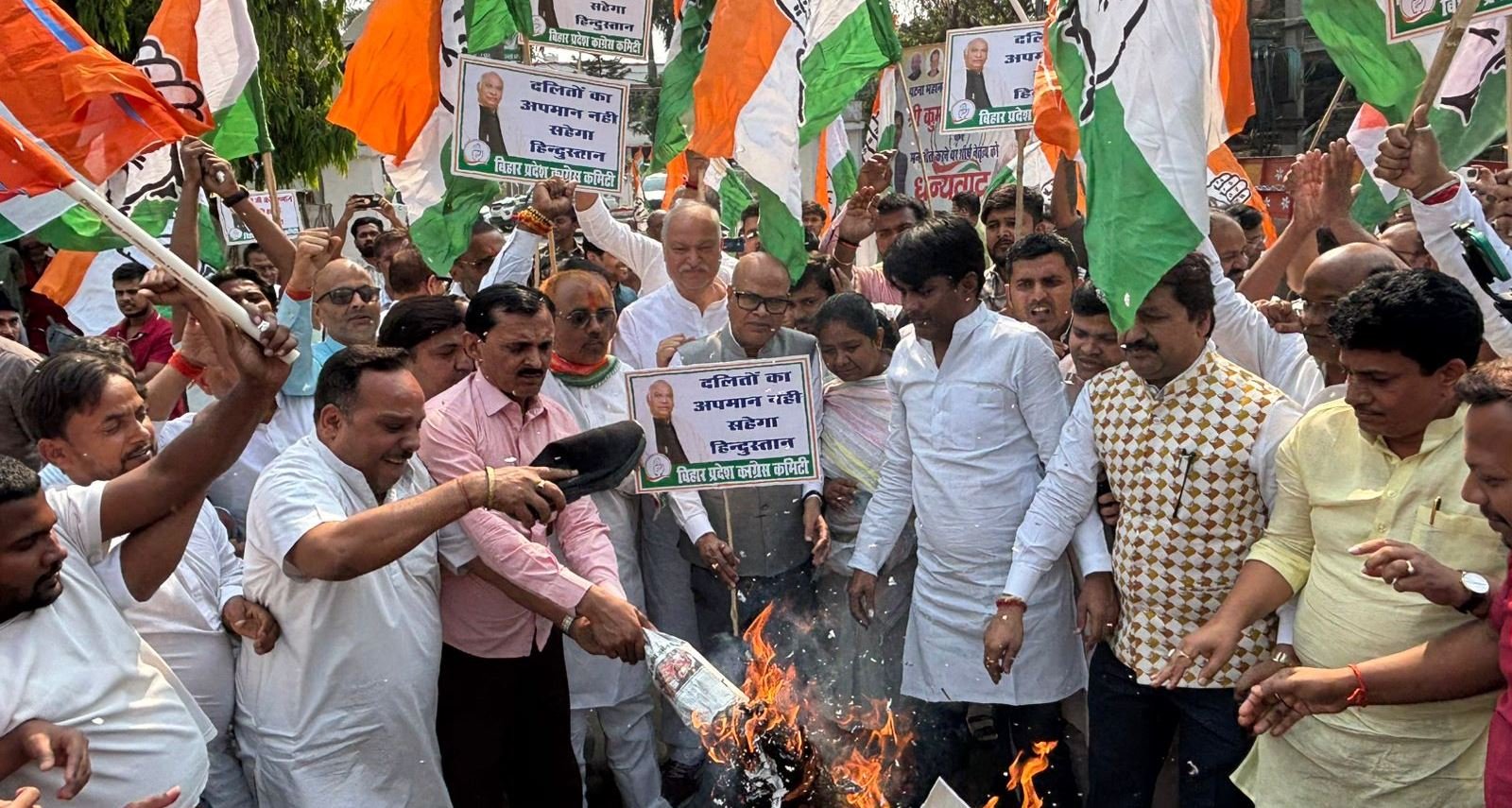 پٹنہ، 9 اپریل : بہار پردیش کانگریس کے صدر راجیش رام کی قیادت میں کانگریس کارکنوں نے احتجاج کیا اور آسام کے وزیر اعلیٰ ہمانتا بسوا سرما کا پتلانذرآتش کیا۔