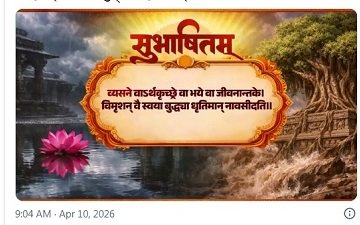 نئی دہلی، 10 اپریل: وزیر اعظم نریندر مودی نے جمعہ کو ایک سنسکرت سبھاشتم کا اشتراک کیا اور مشکل حالات میں پرسکون رہنے اور سمجھداری سے فیصلے کرنے کی اہمیت پر زور دیا۔
