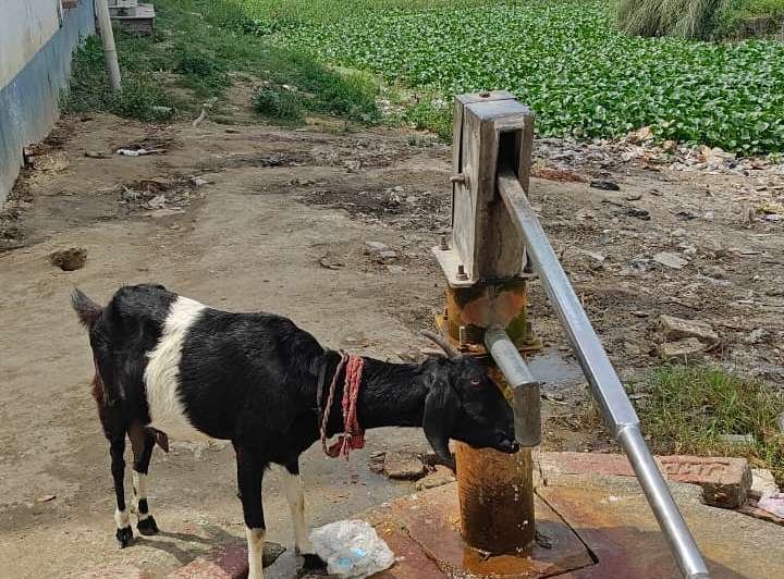 !جھلستی زمین، تڑپتی زندگی: پنوورا دھام میں ہینڈ پمپ سے پیاس بجھاتی بکری نے جگائی انسانیت