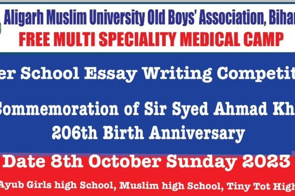 سرسید احمد خان کے 206ویں یوم پیدائش کی یاد میں انٹر اسکول مضمون نویسی مقابلہ پٹنہ، بہار: علی گڑھ مسلم یونیورسٹی اولڈ بوائز ایسوسی ایشن، …