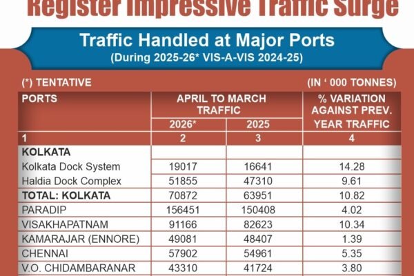 नई दिल्ली, 05 अप्रैल देश के बंदरगाहों ने वित्त वर्ष 2025-26 में 915.17 मिलियन टन कार्गो का आदान-प्रदान कर नया कीर्तिमान स्थापित किया है। यह …