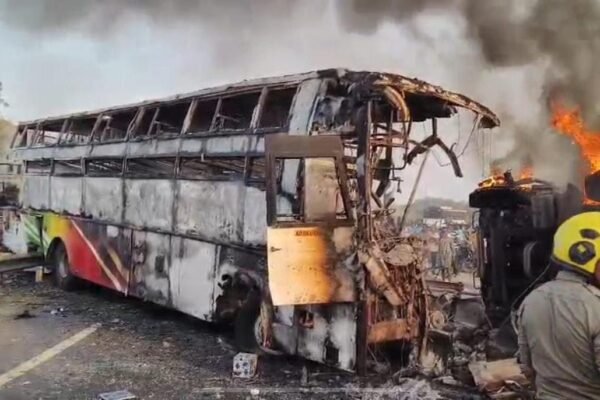 आंध्र प्रदेश, हिंदी आंध्र प्रदेश में भीषण सड़क हादसा- 10 यात्रियों की जलकर मौत, 20 से ज्यादा घायल Posted onMarch 26, 2026March 26, 2026 हैदराबाद, 26 मार्च आंध्र प्रदेश के मार्कपुरम जिले में गुरुवार सुबह एक भीषण सड़क हादसा हुआ। एक तेज रफ्तार टिप्पर (ट्रक) और निजी बस के …