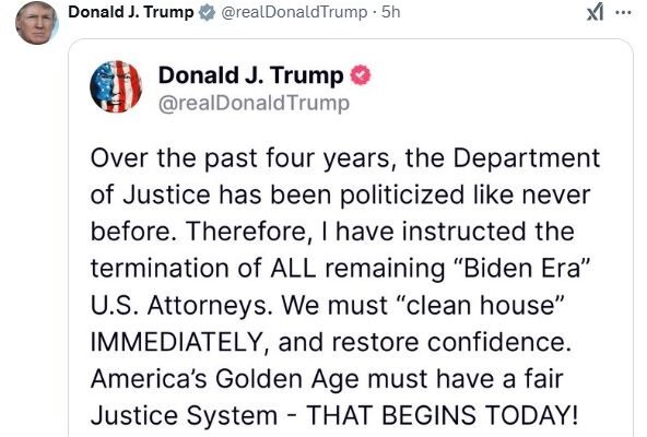 हिंदी ट्रम्प का एक और कड़ा फैसलाः बाइडेन युग के सभी अटॉर्नी को बर्खास्त करने का आदेश Posted onFebruary 19, 2025February 19, 2025 वॉशिंगटन, 19 फ़रवरी (हि.स.)। सत्ता संभालते ही एक के बाद एक सख्त फैसले कर रहे अमेरिकी राष्ट्रपति डोनाल्ड ट्रम्प ने बाइडेन प्रशासन के सभी अटॉर्नी …